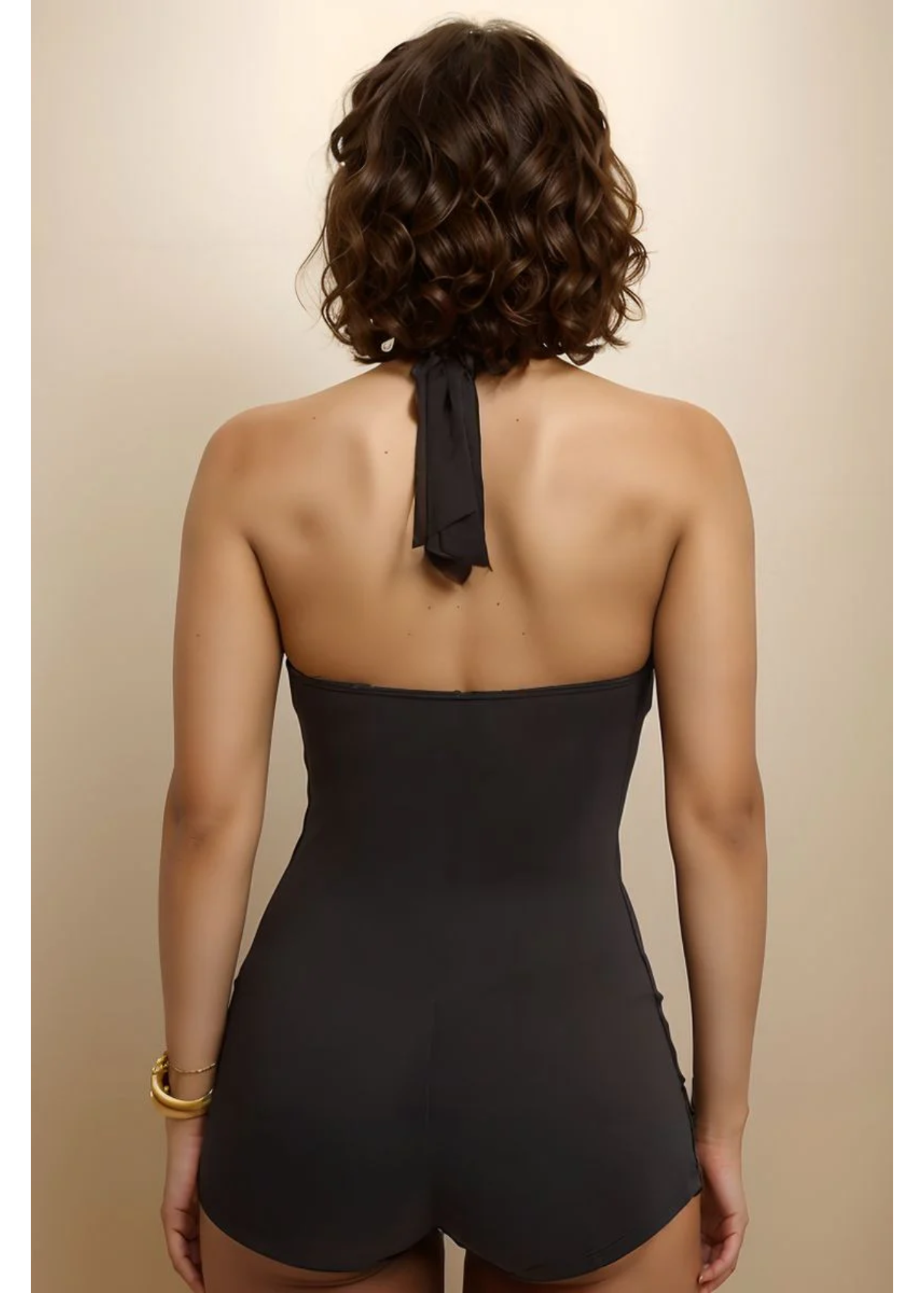 It's a perfect one-piece swimsuit for your next beach adventure! Designed with a chic halter-neck style and intricate ruching on the front panel, this swimsuit not only flatters your figure but also hides any unwanted tummy bulges. Whether you're lounging by the pool or taking a dip in the ocean, this monokini is sure to make you feel confident and beautiful.