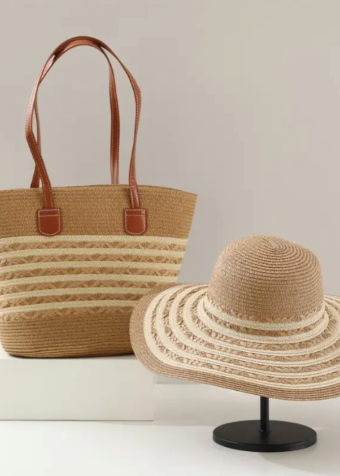 Elevate your summer style with this chic and coordinated beach hat and tote bag set is a perfect for sunny getaways, beach days, or resort lounging. Crafted from durable woven straw, this set combines fashion with function.