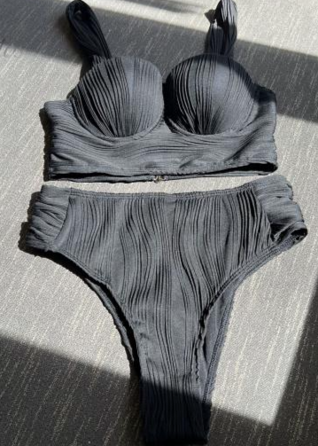 Get ready to turn heads with our fabulous balconette design Black bikini set. It showcases a flattering bikini top and bottom, both adorned with a stylish wavy texture. This trendy ensemble is designed to enhance your curves and make you feel confident and chic at the beach or by the pool.
