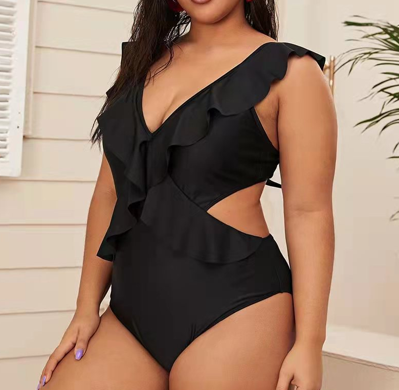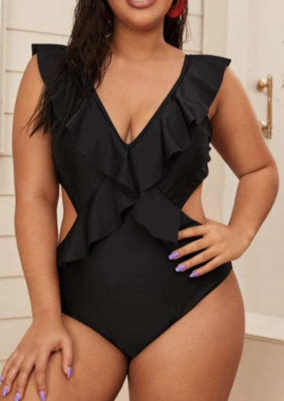 Design Details: Monokini with waist cut-out details enhanced by ruffle design on the neckline and waist