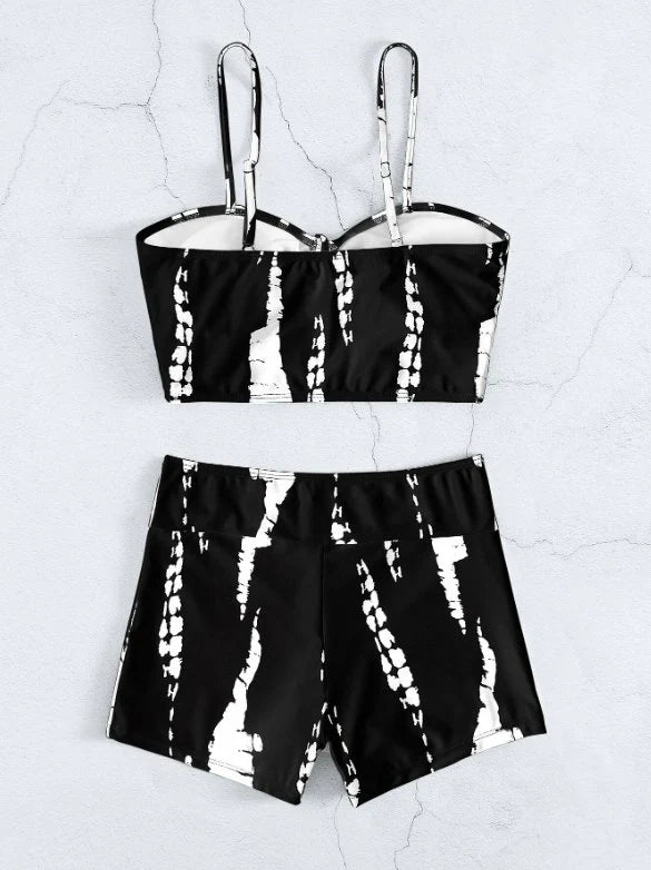 Designed to flatter and support, this printed bikini top features a structured silhouette with soft ruching at the center for a sculpted fit. The adjustable shoulder straps ensure comfort and flexibility, while the smooth stretch fabric hugs the body effortlessly. Perfect for lounging poolside or styling beyond the beach, this top blends confidence with comfort.