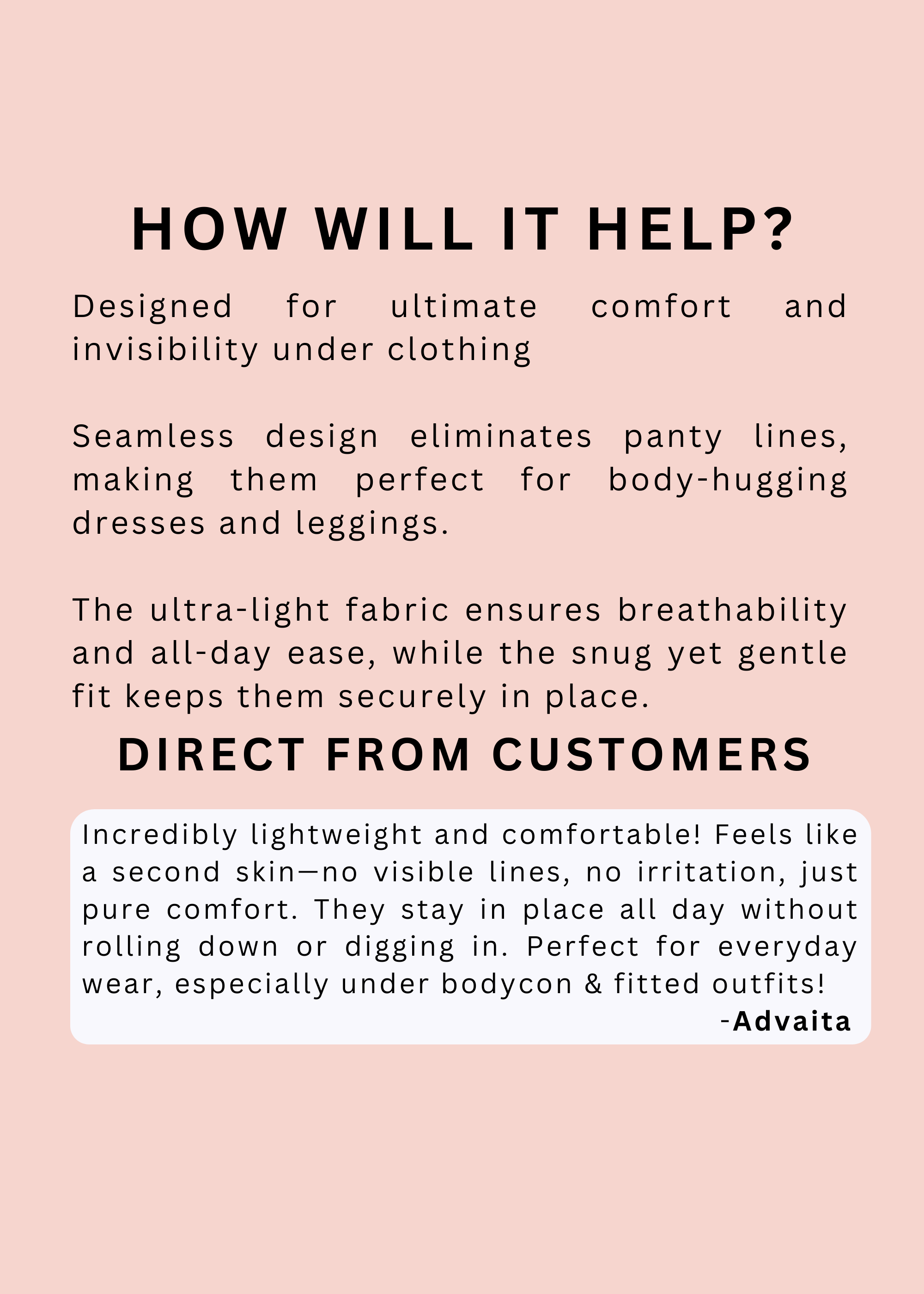 Introducing our Black Weigh-Free Seamless Panties, designed to redefine comfort and confidence in your daily wear. Crafted with seamless construction, these panties offer a weightless feel for all-day comfort. The antibacterial bottom crotch provides an extra layer of hygiene and assurance, ensuring you feel fresh and confident throughout the day. Elevate your underwear collection with this perfect blend of style, comfort, and practicality, allowing you to move with ease and confidence in every moment.