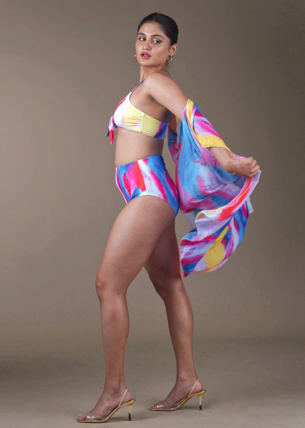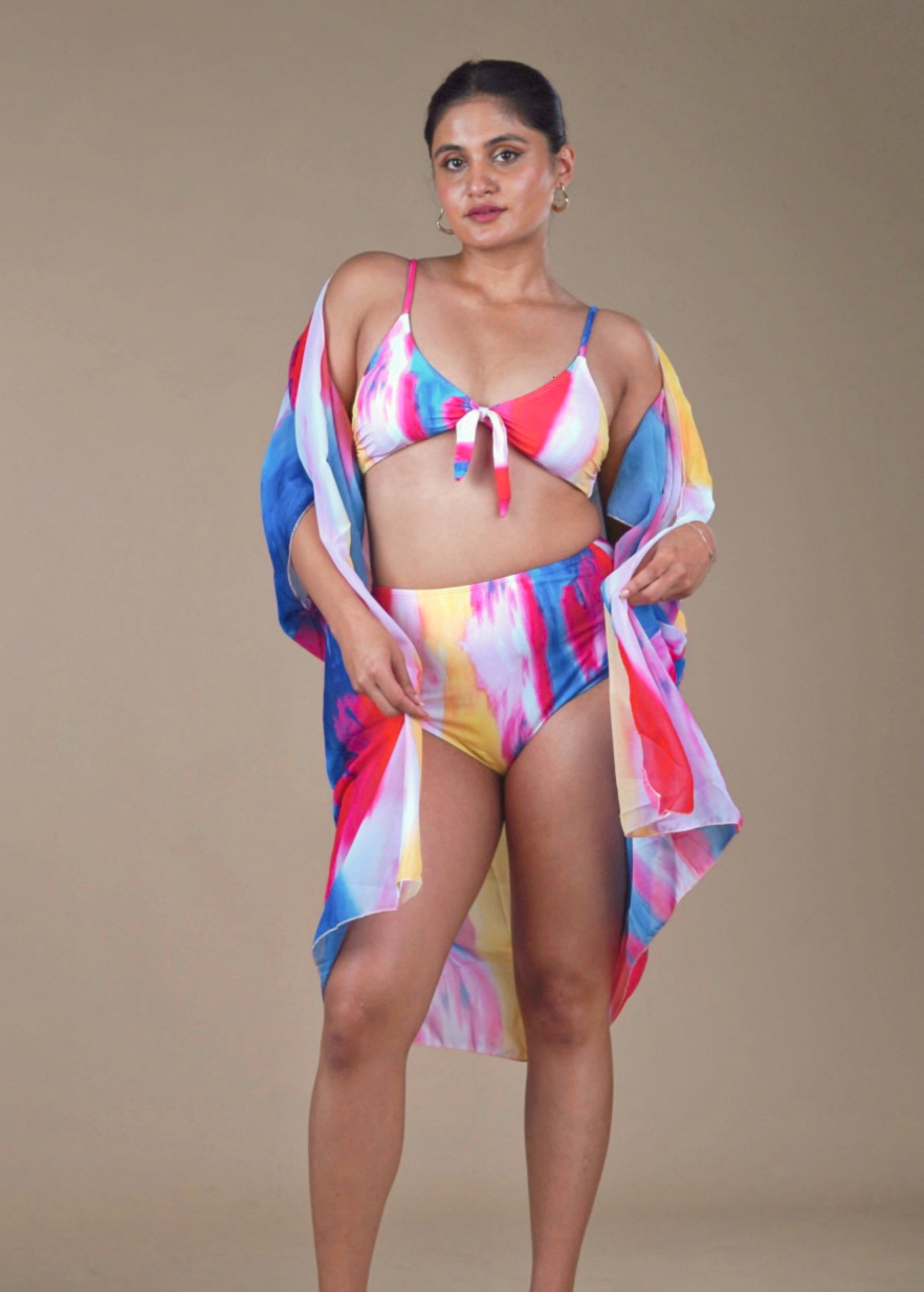 Introducing our latest summer essential for the stylish ladies out there - the printed Pink Bikini. This trendy piece is a must-have in your wardrobe this season. With its high-waisted design, padded top, and matching coverup, it guarantees both comfort and style. Don't miss out on looking cute and chic at the beach or pool with our printed pink bikini.