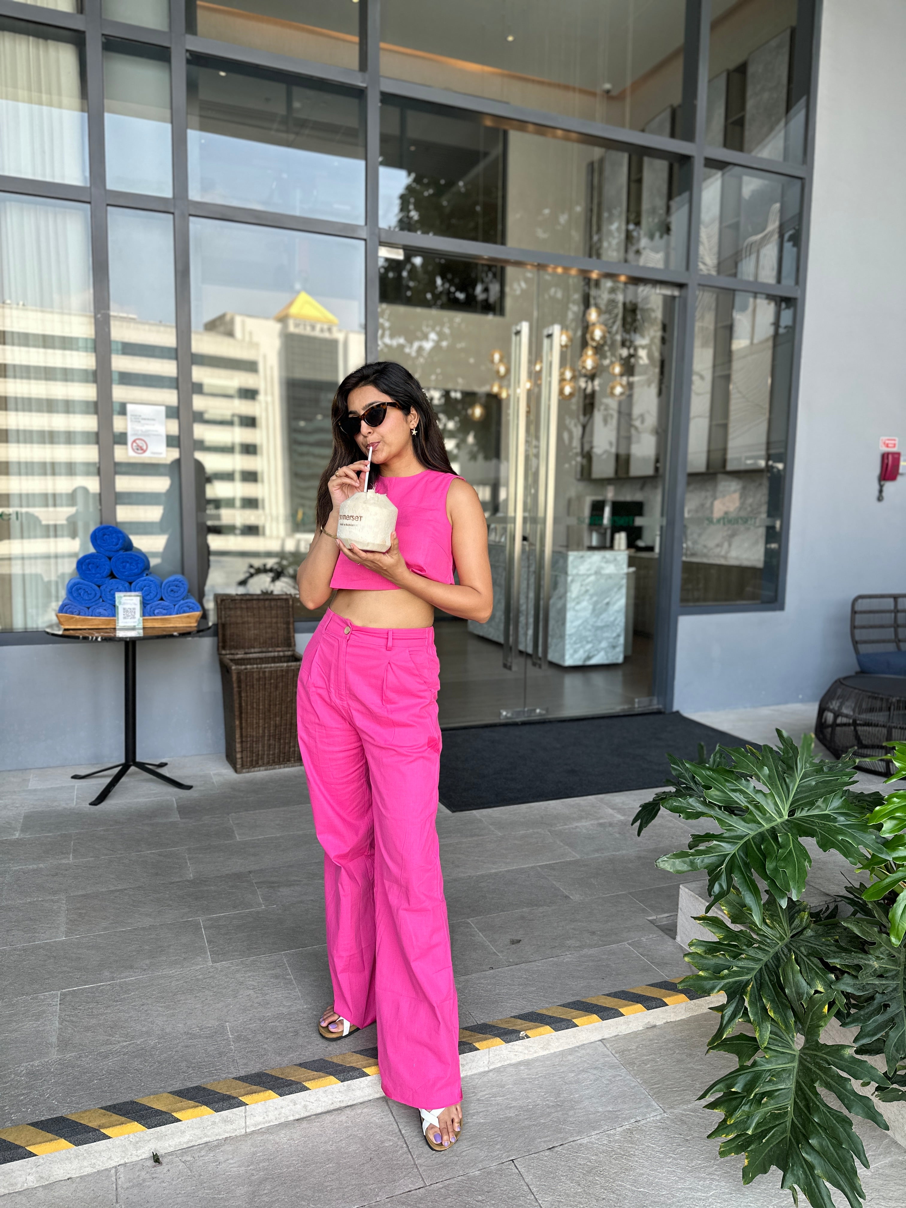 Introducing our Hot Pink Co-ord Set a fusion of bright colors and contemporary fashion. This pink set exudes an effortless charm with its striking color. Each piece is uniquely crafted, ensuring you stand out in a crowd.