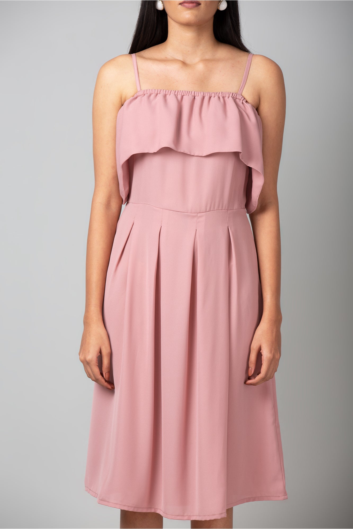 Pink off shoulder dress is most suited if you are going for the chic business casual look at work. This dress goes well with hourglass body type.