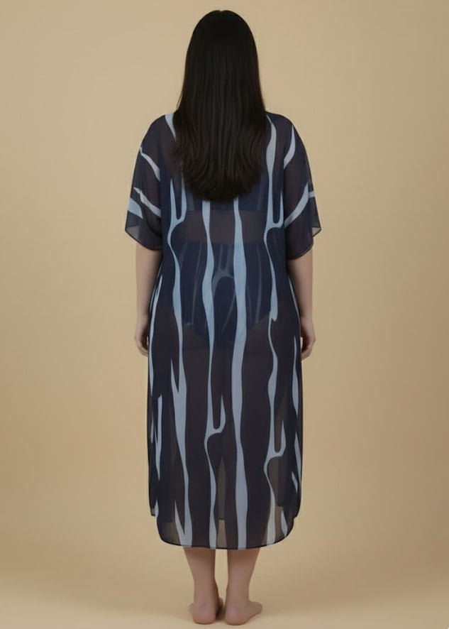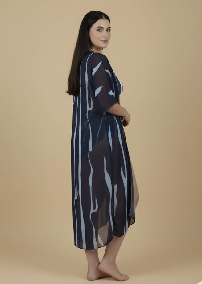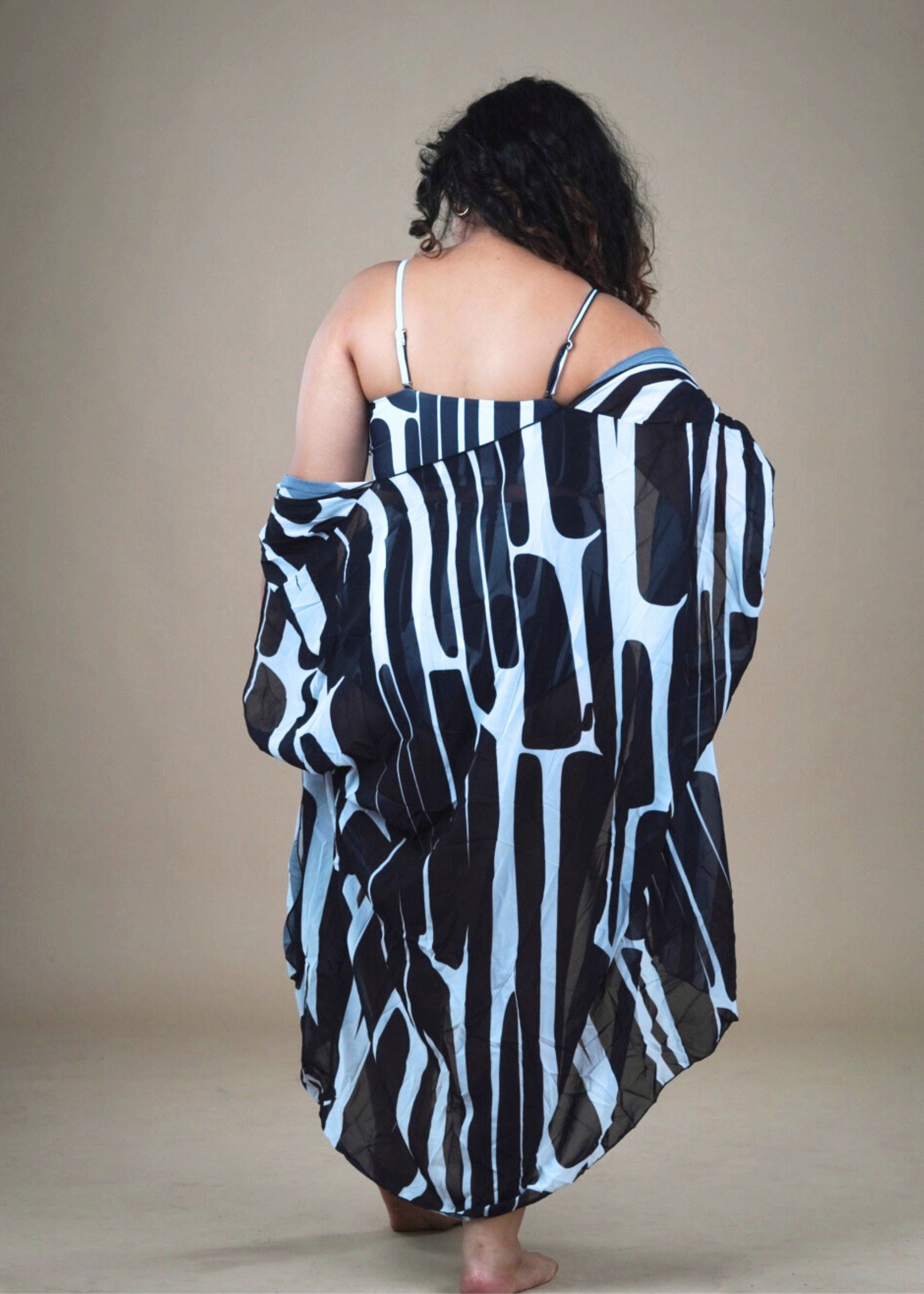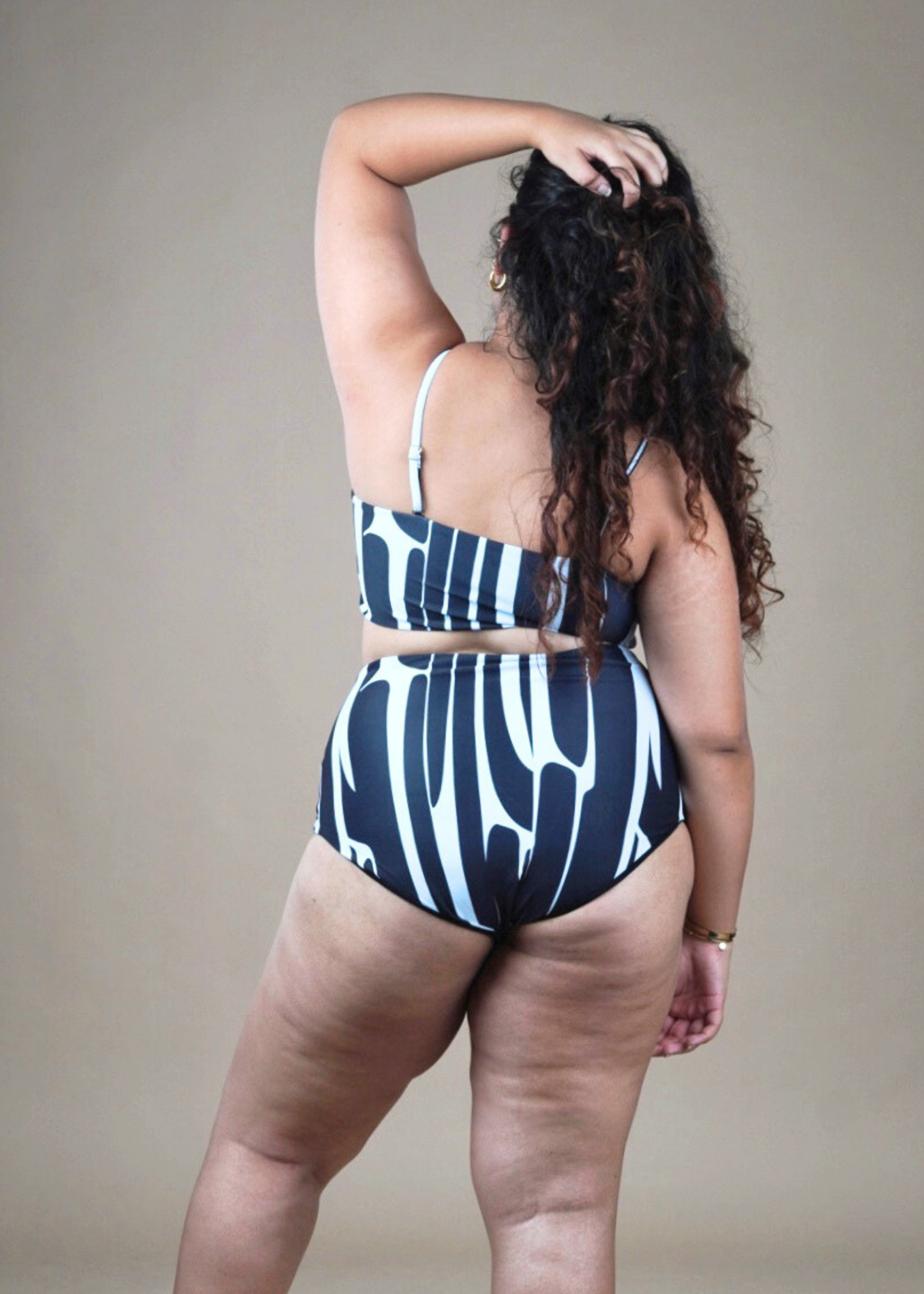 Waves by Shrijal: Turn the Tide, a stylish high-waisted bikini set accompanied by a matching coverup boasting a captivating black and white graphic print. This fashionable swimwear is designed to make a statement, allowing you to effortlessly turn heads at the beach or poolside. With its high-waisted bikini bottoms and coordinating coverup, this set offers both comfort and style. Embrace the Waves by Shrijal: Turn the Tide and make a splash with this chic and trendy swimwear set.