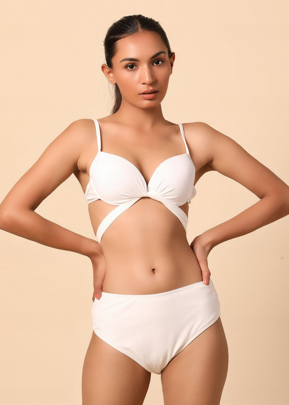 Design Details: This bikini set is ideal for showcasing your feminine side, as it features criss-cross design elements and a soft, lacy skirt with a high slit that enhances your body's length.